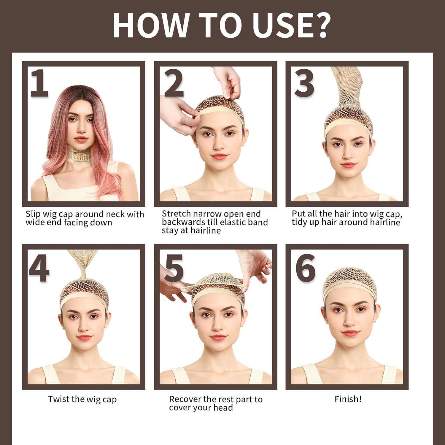 Version 3.0 Plus Size Wig Net For Long Hair Non Slip For Halloween Party Cosplay 2 Pieces
